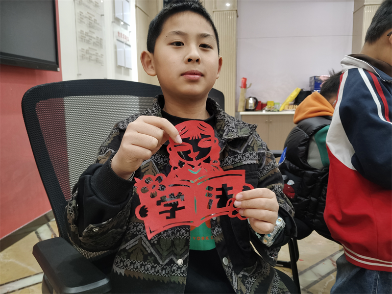 活动的核心环节——主题剪纸,将现场气氛推向高潮。在志愿者的指导下,孩子们手持红纸与剪刀,全神贯注地创作。不一会儿,普通的红纸在他们手中“活”了起来:象征力量与保护的紧握的拳头、代表和平与友爱的橄榄枝与牵手小人、寓意法律公平公正的天平,以及一个个鲜活的“法”字和“爱”字……每一幅作品,都是孩子们对“反对霸凌”和“法律保护”最直观、最纯真的诠释。