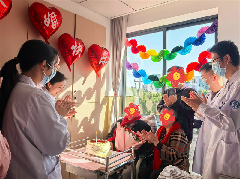 在安宁疗护病区,温暖从未缺席。这里始终以爱为底色,用细致入微的关怀,点亮每一个需要慰藉的时刻。正如这次金婚纪念所传递的,安宁疗护不仅是医疗上的照护,更是心灵上的陪伴与情感上的共鸣。未来,医护团队仍将延续这份温暖的使命,以爱心与专业,持续为患者与家人编织一段段值得珍藏的生命时光。(陈英、王丹露)