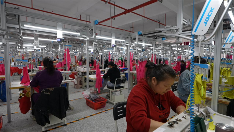 走进泥江口镇的益阳市湘银之舞服饰有限公司车间,五颜六色、令人眼花缭乱的生产线一片忙碌。工人在智能裁床、智能吊挂系统等现代化设备的帮助下,最快几十秒就可以完工一件广场舞服。