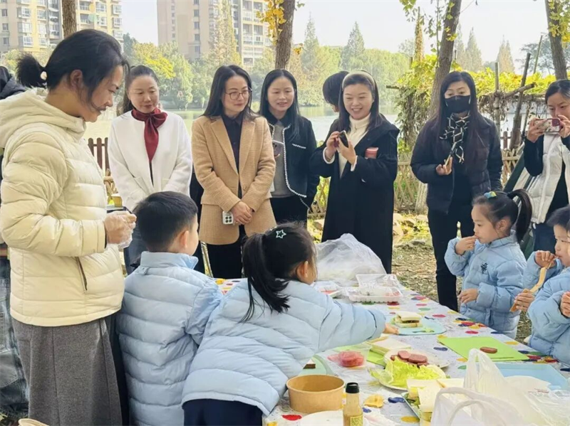 在宁波市鄞州区江东中心幼儿园,成员们现场感受了博物视角下“悦·探”生活课程环境与幼儿游戏中的生命样态。一场基于当日游戏现场的聚焦“户外自主游戏观察与解读”的深度教研,在共同分享、交锋质疑、相互补充中形成“观察与解读儿童游戏”的集体智慧,彰显“看见儿童的力量”。