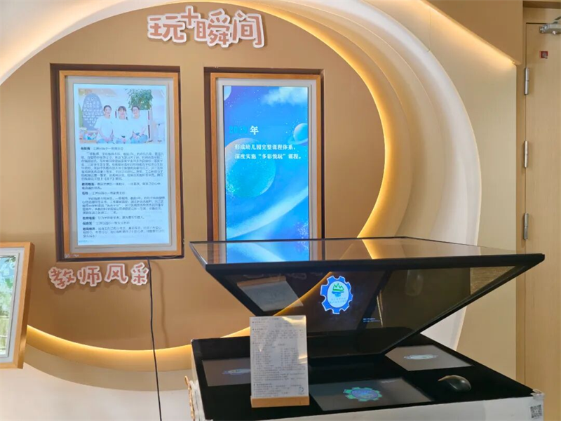 走进杭州市滨江区钱塘山水幼儿园,AI科技氛围扑面而来。AI赋能的幼儿园游戏环境吸引大家沉浸式参观体验,在3D全息互动、AR互动沙盘游戏、智慧体感运动、实物建模游戏中,切实感受到“现在小玩家、未来大创客”办园理念的落地。张波园长进行《AI数智赋能“玩+课程”促游戏高质量发展的创新实践》专题分享,全面系统介绍AI数智赋能下的“玩+”课程体系,让成员们感受到科技的力量。