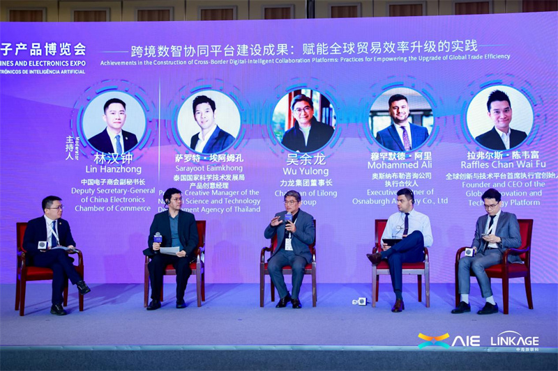 最后的主题对话总结环节由中国电子商会副秘书长、全球数字经济联盟(澳门)监事长林汉钟主持,主题为“跨境数智协同平台建设成果:赋能全球贸易效率升级的实践”,与会嘉宾来自泰国、马来西亚、英国、中国,嘉宾们结合产业实践与国际视野,分享平台建设价值与发展路径。