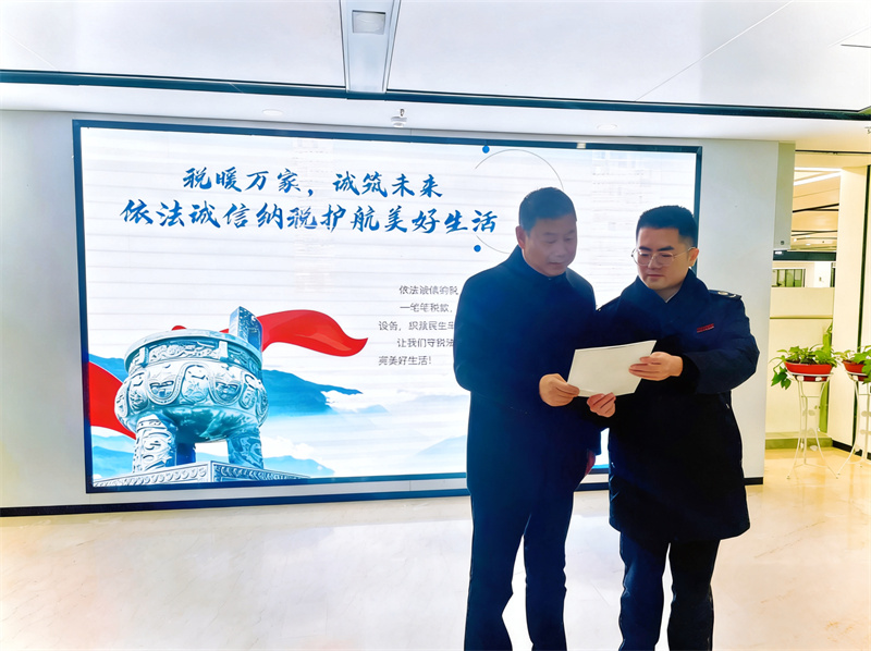 在办税服务厅内,整齐摆放着纳税信用评价标准、税费优惠政策汇编等各类宣传资料,方便纳税人在等候办理业务时随时翻阅学习。大厅LED显示屏循环播放“依法诚信纳税是每个公民的法定义务”“税暖万家,诚筑未来”等宣传标语,营造出浓厚的宣传氛围。