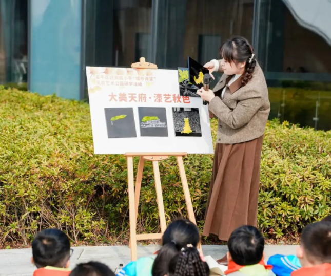 发布时间:2025-12-23 14:02:07 | 来源:中国网 | 作者: | 责任编辑:吴一凡为深化落实《成都市人民政府办公厅转发市教育局关于城市资源赋能教育发展工作方案的通知》要求,切实将城市文脉资源转化为育人优势,近日,彭州市实验小学和成都市迎宾路小学及新津区成外附小的学生共同参加了“大美天府·漆艺秋色”主题研学活动。师生走进天府艺术公园与成都市美术馆,在沉浸体验、学科融合与校际交流中,感知城市历史底蕴与艺术脉动,实现人文素养的涵育与提升。
