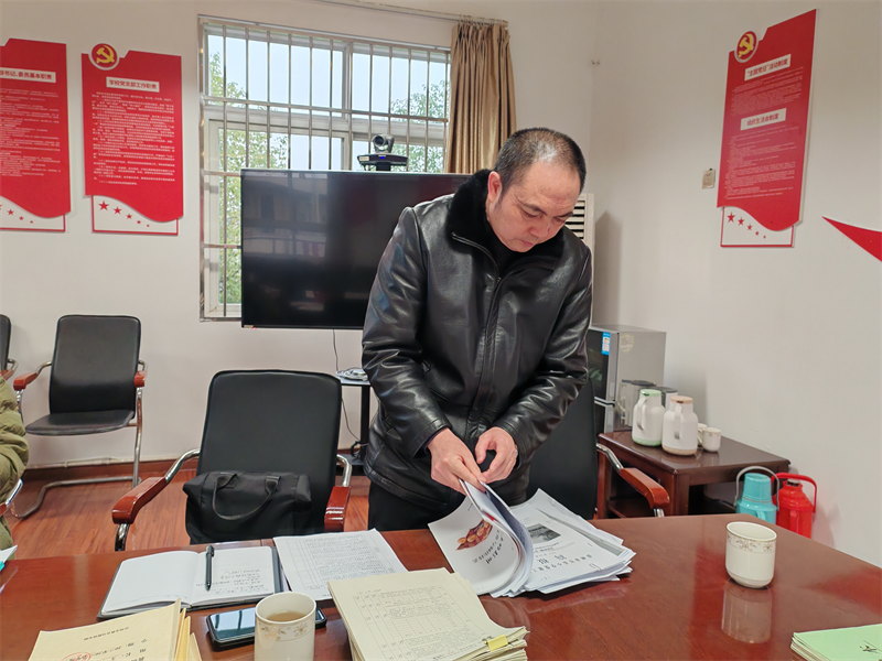 为全面了解学校大中小幼思政一体化建设落实情况及评价工作推进成效,2025年 12月 19日,彭州市教育局第三责任区督学冯小飞、王云刚、周成安、彭云玖、廖静萍一行五人莅临军乐小学,开展本月常规督导与专项督导工作。本次督导聚焦思政教育一体化评价核心任务,通过多维度、深层次的检查与交流,对学校思政工作进行全面把脉与专业指导。