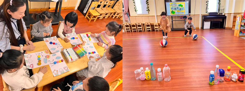探索之外,趣味互动环节更是让教室里充满欢声笑语。孩子们手持瓶罐开展《趣味保龄球》游戏,在奔跑与碰撞中锻炼协调能力;发挥想象力用五彩瓶盖拼接成毛毛虫身体,将创意与动手能力完美结合。普通的瓶罐在孩子们手中摇身一变,成为“会说话”的玩具和充满童趣的手工作品。