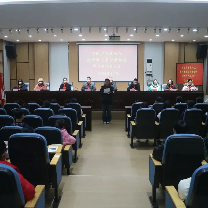 发布时间:2025-12-24 16:07:56 | 来源:中国网 | 作者: | 责任编辑:孙玥少年有志,筑梦前行;薪火相传,奋楫争先。为筑牢少先队组织根基,凝聚少年奋进力量,2025年12月19日,彭州市文翁丹景学校召开第七次少先队员代表大会,学校党支部书记、校长陈显斌、校外辅导员沈牟、德育主任易伟、中队辅导员老师以及家长代表出席本次大会,与少先队员代表共赴这场专属少年的盛会,共同见证少先队员们的荣光。