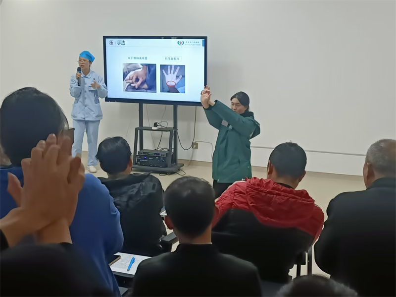 培训内容精准聚焦基层医疗常见痛点与薄弱环节,分为理论培训和实操培训两部分。抗菌药物静脉注射考核部分,重点围绕抗菌药物临床应用规范、静脉输注操作标准及用药安全管理等内容开展教学与考核,为基层医疗机构申请静脉注射资质核准奠定基础。急诊急救技能培训则涵盖心肺复苏、AED使用、海姆立克急救法及创伤救治等实用技术,由市人民医院重症医学科护士长谢颖超、120护士长李林霏、急诊科护士长尹娜、骨科副主任医师匡峥嵘分别进行讲解与考核。