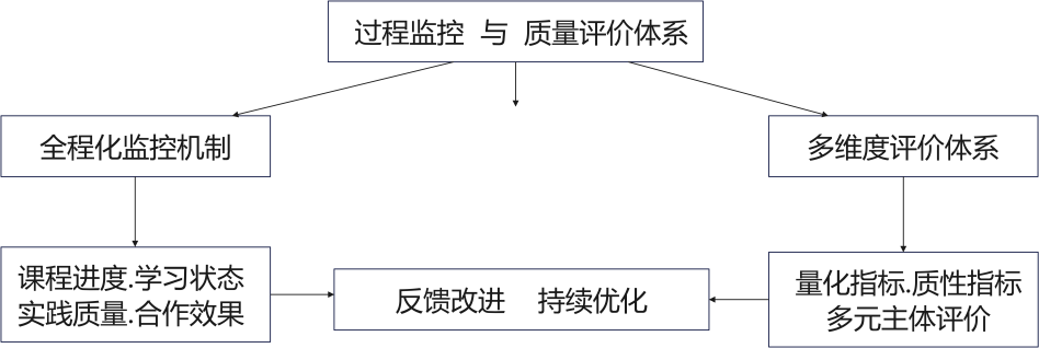 过程监控与质量评价体系是确保培养机制有效运行的重要手段,建立全程化的监控机制,对人才培养的各个环节进行实时跟踪与记录,及时发现并解决培养过程中出现的问题,监控内容包括课程实施进度与学生学习状态以及实践教学质量与校企合作效果等多个方面,通过定期检查与专项评估等方式确保监控的全面性与有效性。质量评价体系应构建多维度的评价指标,既包括学生知识掌握程度与技能水平的量化指标也涵盖职业素养与创新能力等质性指标,评价主体应包括学校教师与企业导师及学生本人形成多方参与的评价格局,评价结果需要及时反馈给相关主体并作为改进培养方案的重要依据(见图3)。