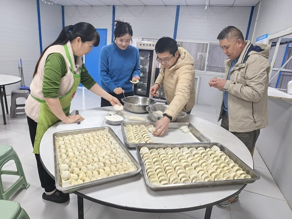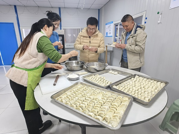 “在工地上和大家一起过节,心里很暖。”一位同事捧着热腾腾的饺子笑着说。项目部还将煮好的饺子送至坚守岗位的员工手中,让关怀遍布工地每个角落。