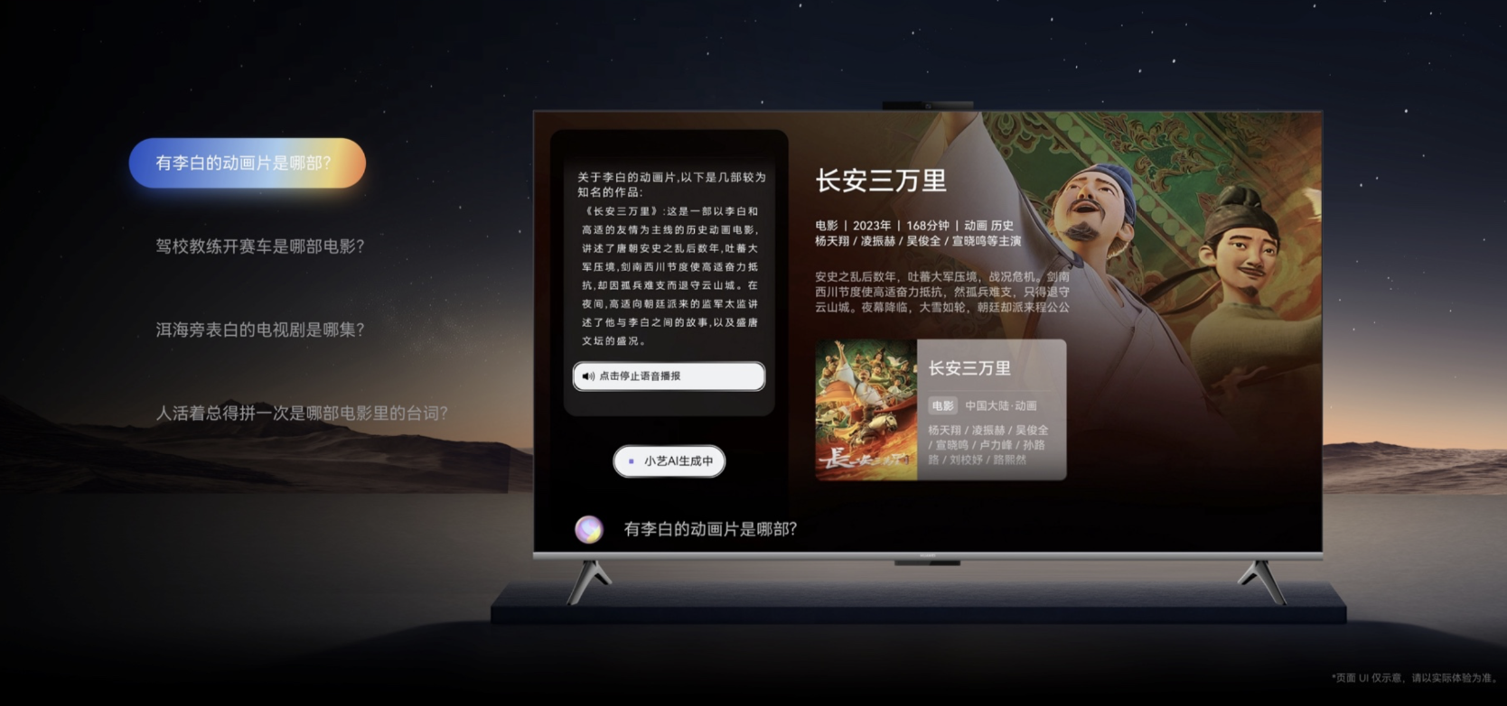 此外,电视还支持百科问答与AIGC内容创作,例如作诗、写作文、生成数学题、成语接龙等多场景AI应用。无论是孩子学习、亲子互动,还是日常娱乐问答,大屏不再只是内容播放器,而是逐渐演变为家庭中的智能交互中心。
