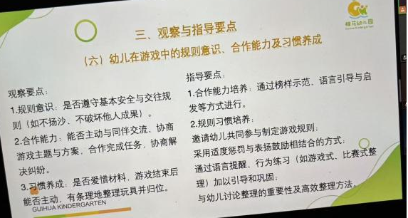 活动中,我们以“导读+案例分享+互动研讨”的形式展开。主持人首先梳理书中核心观点,结合理论展示幼儿园沙水游戏的关键经验;随后,教师分组围绕“沙水泥巴游戏在游戏内容与关键经验方面有什么不同”“沙水泥巴游戏在游戏内容与关键经验方面有什么不同”“沙水泥巴游戏在游戏内容与关键经验方面有什么不同”等话题展开学习;同时,沙龙还设置了“问题解决对策”环节,鼓励教师现场构思并阐述出自己的解决对策,在思维碰撞中激发创意。