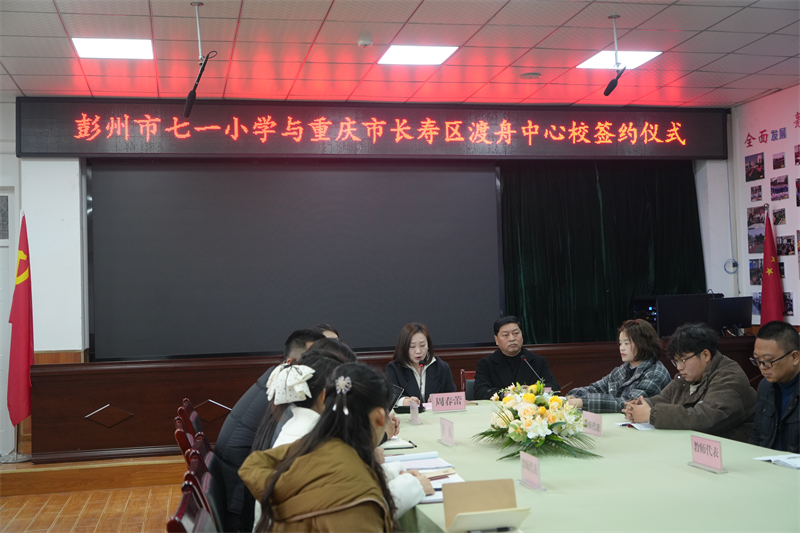 教育协同促发展,云端签约启新篇。为深入推动区域教育协同发展,促进优质教育资源共享。2025年12月19日,彭州市七一小学与重庆市长寿区渡舟街道中心校网上签约仪式成功举办,为两地教育协同发展注入新动能。