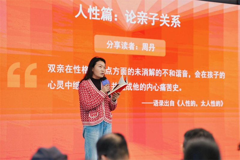 首位分享者周丹聚焦“人性篇・亲子关系”相关语录,谈及“双亲性格观点的不和谐,会在孩子心灵中持续影响”这一表述,直言其促使自己重新审视家庭教育中的沟通方式,如今更注重家庭观念传递的一致性。