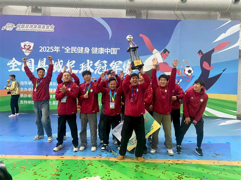 发布时间:2025-12-26 16:12:50 | 来源:中国网 | 作者: | 责任编辑:孙玥12月24日上午,广西桂林的绿茵场上,终场哨声清脆响起,2025年“全民健身、健康中国”全国县域足球冠军赛落下帷幕。在河南信阳息县众鑫足球队对阵新疆兵团第八师石河子镇足球队的巅峰对决中,息县众鑫队员们拼尽全力驰骋赛场,最终虽以1:4憾负对手,斩获本次赛事亚军,队员付子豪荣获赛事“最佳门将”,创下信阳足球发展史上的辉煌战绩。终场哨响的瞬间,队员们相互拥抱、拍打肩膀彼此鼓劲——这支从县域走出的草根球队,用一路的坚守与拼搏完成了从基层赛场到全国总决赛的华丽突围,赢得了全场观众的敬意与掌声。