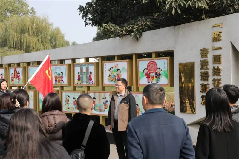 下午14时,党员教师们来到了绵竹年画村(四川省级廉洁教育基地)。这里,非遗文化的魅力与廉洁教育的内涵交相辉映。党总支部书记李支德结合参观感悟,传达学习党的二十届四中全会精神,引导大家找准“文化传承”与“教育教学”的结合点,推动非遗文化进校园、进课堂,让传统文化在校园里绽放新的光彩。