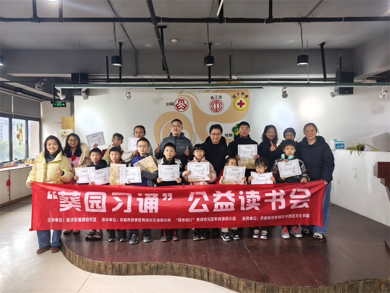 “葵园社教团”不仅是知识的传递者,更是阅读生态的构建者。他们突破传统诵读形式,打造“经典+”多元场景:在文化场馆开设“行走的课堂”,让典籍走出书本;为学校定制“晨读经典”校本课程,使阅读成为校园风尚;向四川省北川羌族自治县永安镇工农村、邛崃市大同镇孔家山村、甘孜州道孚县下拖乡下瓦然村、云南省大理白族自治州剑川县金华镇文华村捐赠国学读物近千册,带动500余个学龄儿童加入读书活动。这种“可听、可视、可参与”的阅读推广模式,正悄然改变着家庭文化生活习惯。