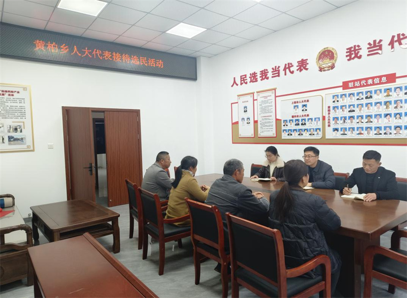 (图为黄柏乡人大代表在联络站接待选民,搜集民情民意)