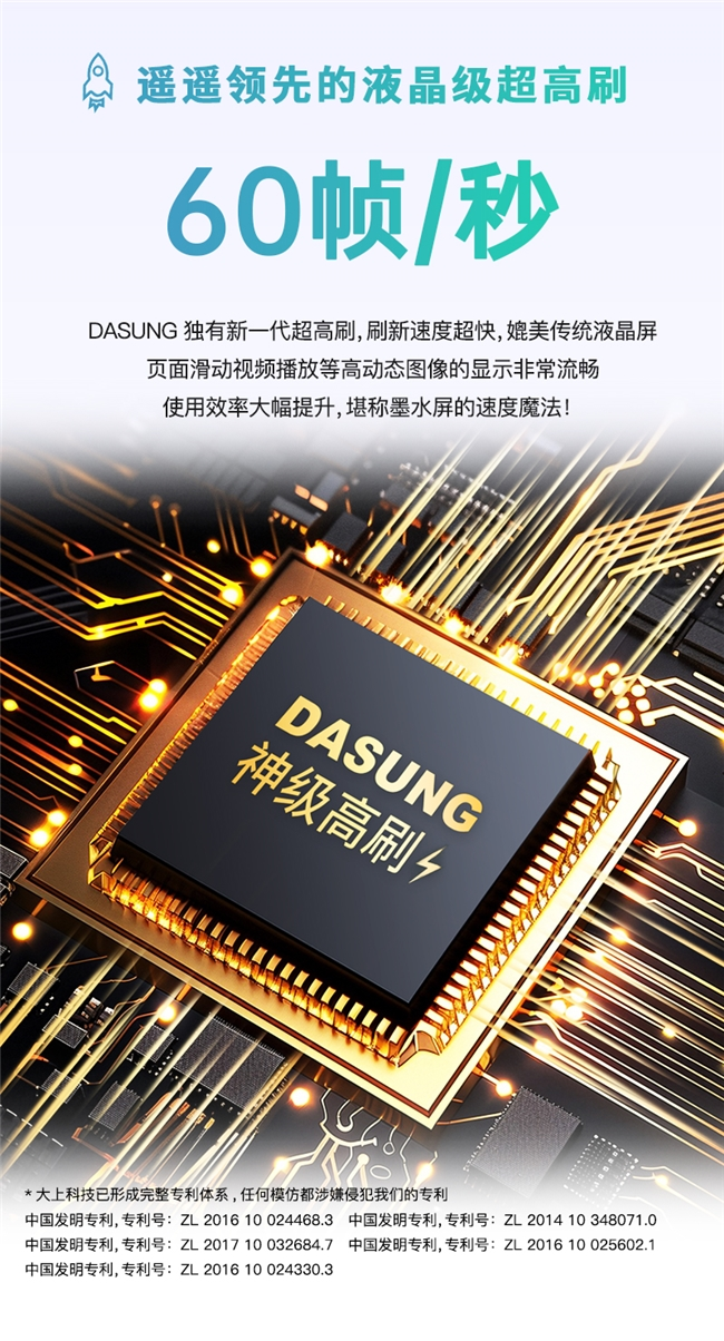 Link(超高刷无线版)内置了DASUNG独有的60Hz墨水屏超高刷专利技术,让墨水屏如同液晶屏一样流畅,不再是传统墨水屏阅读器“卡、慢、闪”的印象。Link不仅适合纯文字、漫画等静态文档阅览,还能应对高流畅性的场景,比如播放动态视频等。