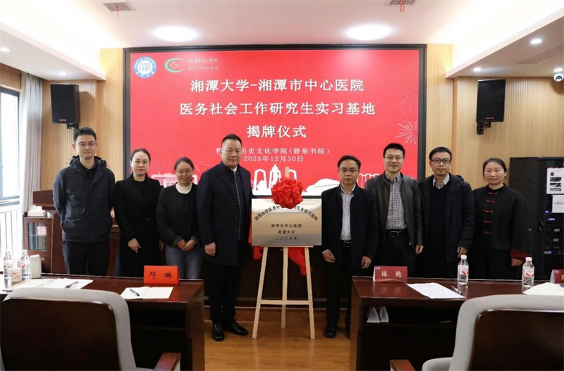 发布时间:2026-01-04 15:59:26 | 来源:中国网 | 作者: | 责任编辑:孙玥12月 30日上午,湖南省湘潭市中心医院(湖南大学附属医院)正式挂牌成为湘潭大学医务社会工作研究生实习基地。市中心医院党委书记夏红、湘潭大学哲学与历史文化学院(碧泉书院)院长张今杰共同为基地揭牌,湘潭大学哲学与历史文化学院党委书记资义平主持揭牌仪式。