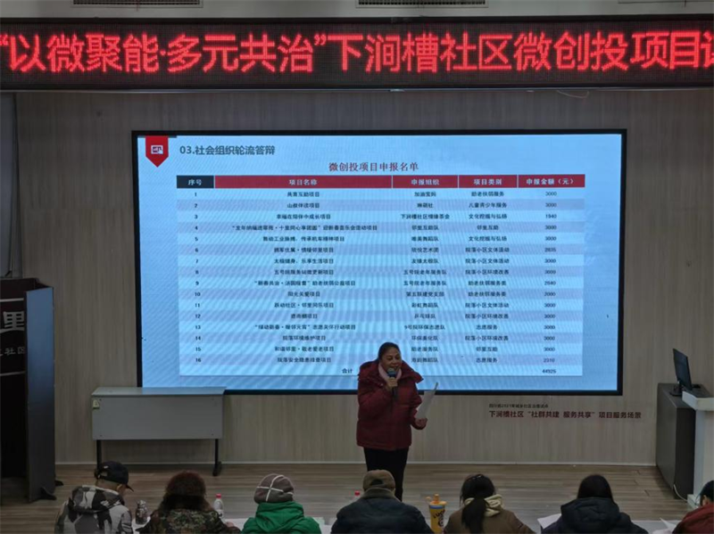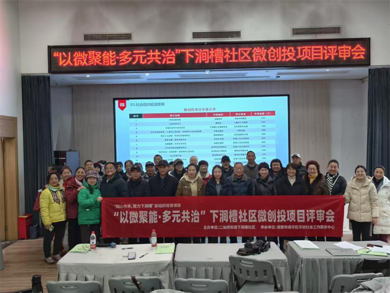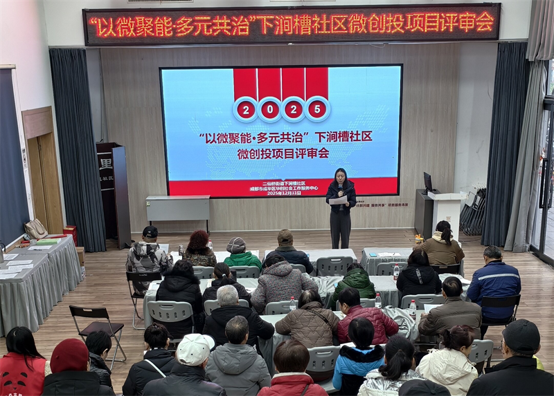 2025年12月31日,成都市成华区二仙桥街道下涧槽社区邻里月台小剧场内气氛热烈,由下涧槽社区主办、成都市成华区华创社会工作服务中心承办的“以微聚能·多元共治”公益微创投项目评审会圆满落幕。