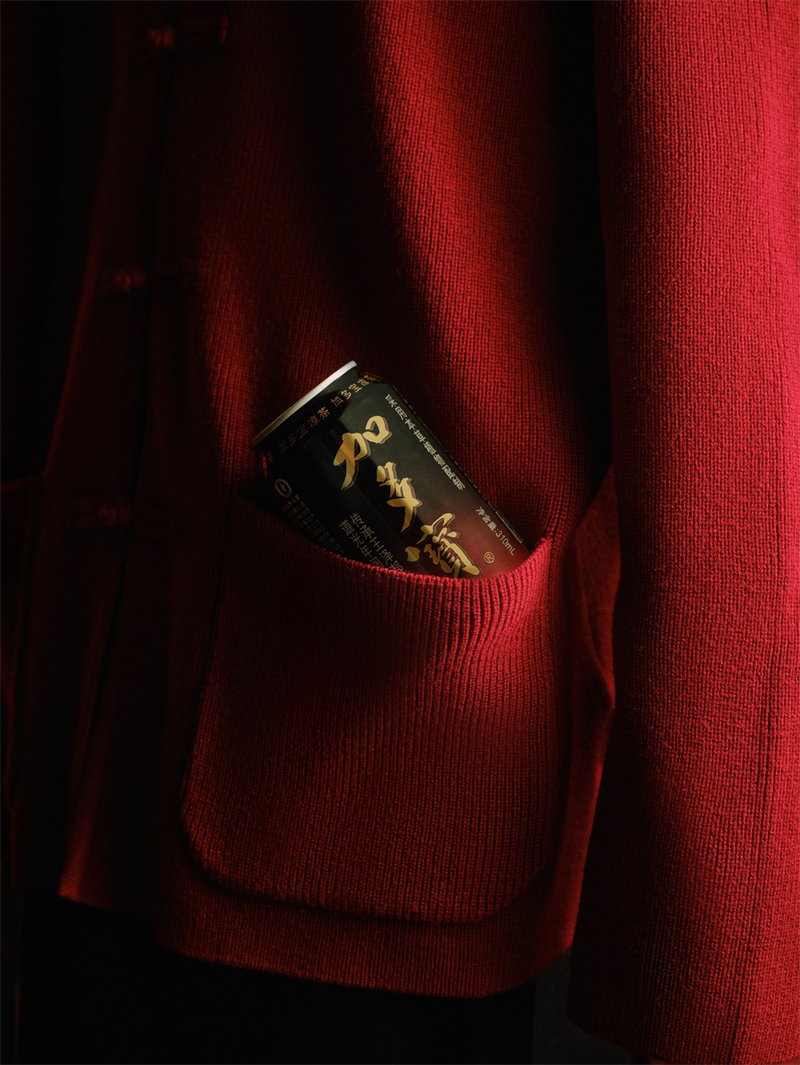 不止于凉茶,加多宝 × TEAM WANG design推出联名服装,通过背部加多宝品牌标识性「寳」字刺绣、TEAM WANG DESIGN金属标牌、「TEAM寳」MONOGRAM提花里布等元素,进一步强化“新年添旺添宝”的美好期许,打造充满节日气息与文化质感的中式新年造型,将宝运穿上身。