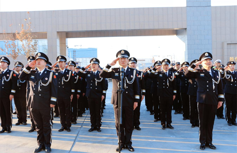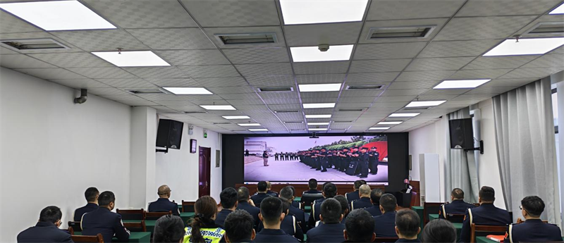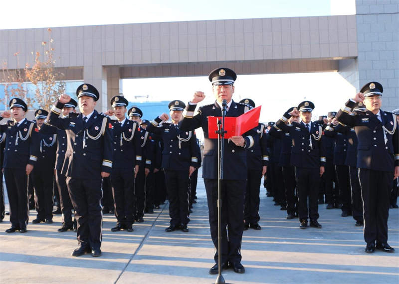 升旗仪式结束,全体人员面向迎风招展的警旗,高高举起右拳。“我是中国人民警察,我宣誓:坚决拥护中国共产党的绝对领导,矢志不渝做中国特色社会主义事业的建设者、捍卫者……”领誓人声如洪钟,全体人员齐声跟读,誓言穿透晨雾,回荡在院区每个角落。这既是对从警初心的回望坚守,更是对守护一方平安的庄严承诺。