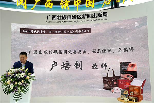 广西出版传媒集团党委委员、副总经理、总编辑卢培钊在致辞中介绍了北京新知了出版咨询有限公司成立的背景与集团布局全国文化市场的战略考量。新知了公司立足北京,实施精品战略,力争形成强有力的人才中心、资源中心和营销中心。他表示,北京新知了作为集团激活出版活力、打破地域局限的重要举措,此次携手广西人民出版社推出的新书及纪念礼盒,通过南北协同运营模式,实现了文学价值与生活美学的完美融合。卢培钊强调,简・奥斯丁作品中蕴含的永恒人性光辉与超前独立思想,是其跨越百年依然畅销的核心原因,而本书凭借权威译者加持与多位学者联袂推荐,确保了内容的专业性与可读性,堪称值得永久收藏的经典传记。他期待北京新知了以本书为起点,推出更多兼具思想深度、艺术价值与市场潜力的优质产品。