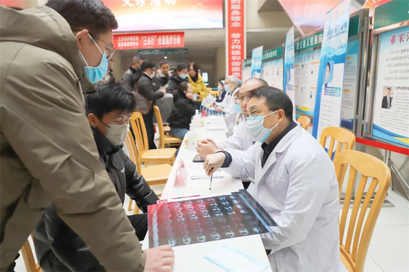 江苏省肿瘤医院专家同步在伊山镇社区中心开展义诊活动。(颜景荣)