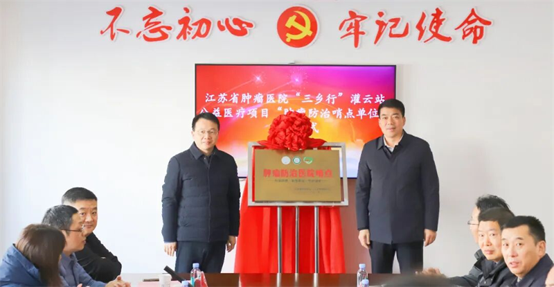 江苏省肿瘤医院副院长蒋峰,灌云县卫健委党委书记、主任、中医药管理局局长周华兵共同为肿瘤医院肿瘤防治医院哨点揭牌。