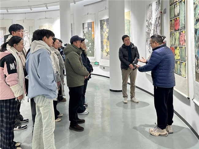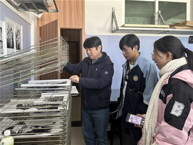 在温州大学美术与设计学院,19名阿坝美术生与温大师生携手开启了一场深度的艺术对话之旅。适逢“浙江省第十一届花鸟画展”展出,同学们驻足于一幅幅气韵生动的作品前,在讲解与探讨中,将课堂理论与中国画的当代创新实践深度结合。随后,大家先后走进油画、国画、版画、素描及服装设计等专业工作室,亲身体验创作过程。在油画区感受色彩的张力,在国画室体味水墨的韵味,在版画工坊了解传统技艺,在服装课堂见证创意落地。阿坝县中学校长王疆在观摩中表示:“我们希望通过这样深度的实地研学,在孩子们心中播下美的种子,切实提升他们的艺术素养,也为他们未来的学业规划与职业选择提供有益的参考。”