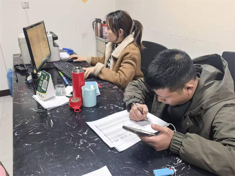 网格员对未缴费名单进行系统整理(韦灿灿摄影)