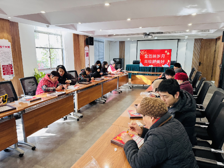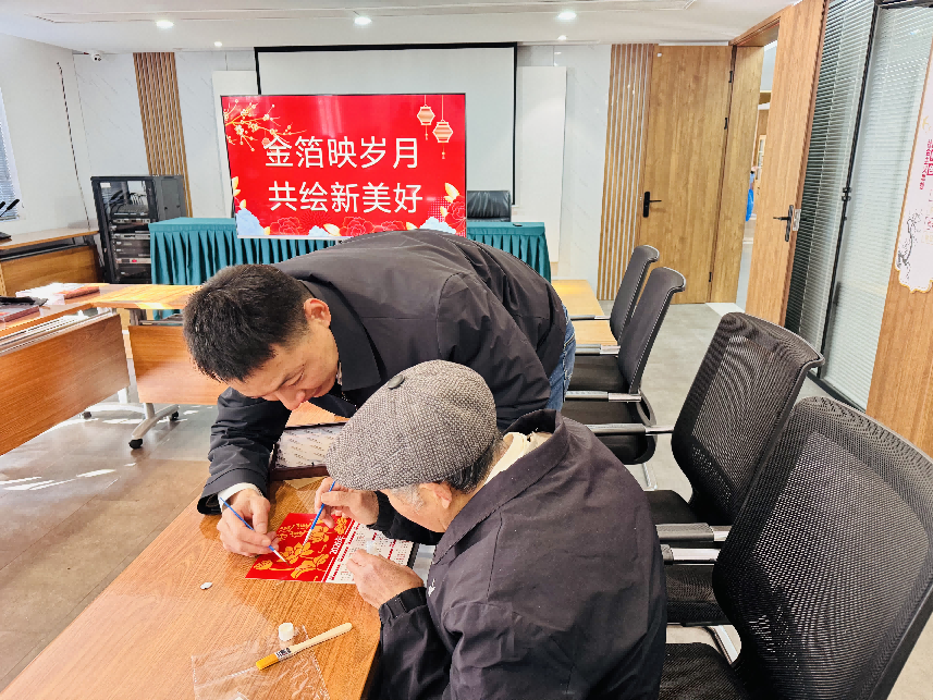 作为东岳民生综合体“遐龄创享”品牌系列活动之一,此次活动吸引了众多社区老年居民踊跃参与。活动现场,志愿者们提前将金箔、日历底板、镊子等材料分装成套,并制作了简易教学图示。在志愿者们的耐心讲解下,老人们围坐在一起,小心翼翼地用镊子夹起薄如蝉翼的金箔,轻轻贴于提前设计好的“福字”“福马”等图案上。经过一个多小时的精心创作,一幅幅闪耀着金色光泽的创意日历逐渐成型。“这是我第一次玩金箔,没想到能做出这么漂亮的日历,过年挂在家里特别有气氛!”黄阿姨举着作品兴奋地说道。