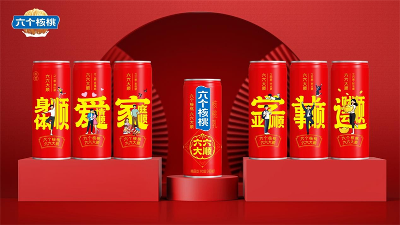 今年春节期间,六个核桃推出专属春节礼盒包装,围绕“六六大顺”主题,融入红色、金色等传统节日元素及象征团圆美好的图案,强化产品在传统节日的市场渗透力,尽显新春佳节的热闹喜庆。六个核桃包装与品牌坚守的“六六大顺”祝福相融,为亲朋好友互赠新年好彩头提供载体,其独具意义的东方哲学、吉祥喜庆的包装、绿色健康的营养配方获得市场和消费者的高度认可。