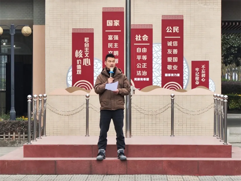 少先队大队辅导员吴老师带领全体学生共同学习贯彻党的二十届四中全会精神、省委十二届八次全会精神、成都市委十四届八次全会精神和彭州市委十五届十一次全会精神,引导同学们将个人成长与时代发展紧密相连,厚植家国情怀,树立远大理想。易主任对本学期德育工作进行了全面总结,从行为习惯养成到校园文化活动,从志愿服务实践到心理健康教育,一个个温暖的育人故事,彰显着学校“立德树人”的初心与成效。同时他寄语全体同学,寒假是成长不停步的调整期,需坚守本分、修身律己,让文雅言行成习惯。