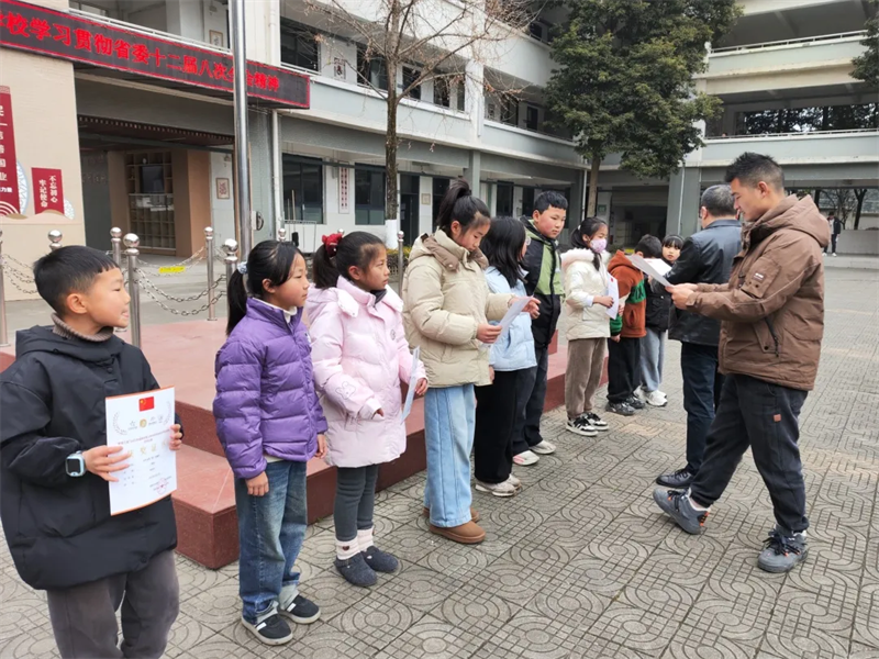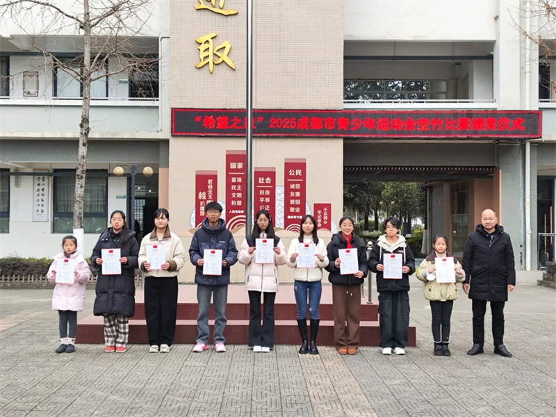 典礼伊始,学校对本学期表现突出的优秀学生干部进行了表彰。他们是班级的中坚力量,是同学身边的热心伙伴。他们用责任与行动诠释着学生骨干的担当。随后,学校还为在“希望之星”2025年成都市青少年中华传统体育项目运动会空竹比赛中斩获前三名的同学颁发了奖状。