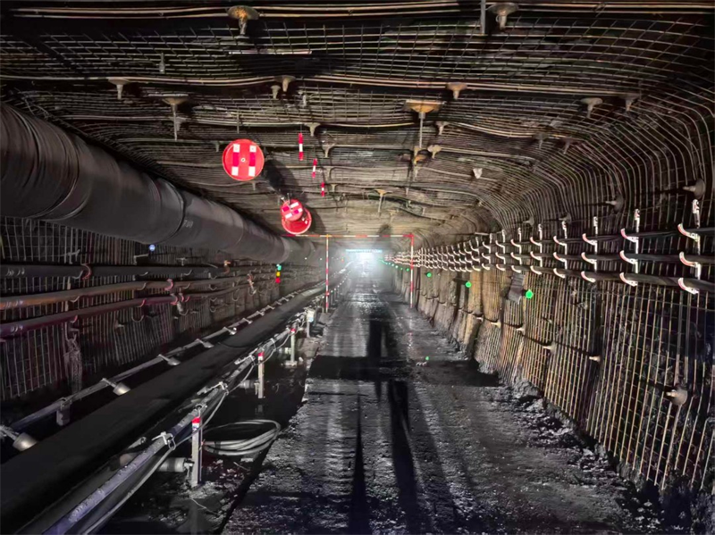 安全支护是巷道施工的“生命线”,队组在这一环节毫不松懈。顶板锚杆按标准间距整齐排布,再搭配钢绞线锚索进行顶部补强,形成牢固的立体防护网,让巷道稳稳扎根地下。装备方面更是“量身定制”,两条巷道分别配备专用掘进机,各展所长助力高效掘进。目前,胶运顺槽已顺利掘进422米,皮带机头段完工且运输系统正常运转;辅回顺槽推进至737米,各工序衔接顺畅,标准化施工让进度与安全实现“双向奔赴”。