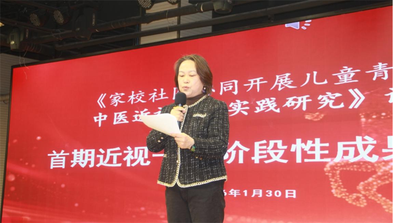 中国教育发展战略学会家校协同专委会副理事长徐碧荣对此次课题实践活动取得的成果给予了充分肯定,认为家校社医协同共建的模式为青少年中医近视防控工作打造了可复制的样本,希望课题组持续开展此项实践工作,定期跟踪并反馈后期的实践效果,切实助力改善提升中小学校视力健康水平,同时也希望这种家校社医协同共建的模式能普及到更多校园与社区,为实现“儿童青少年视力健康促进行动”2030年目标贡献智慧和力量。