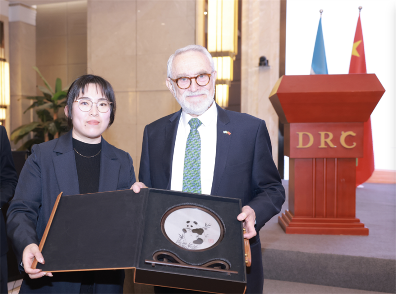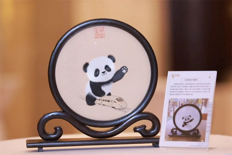 活动中,简阳市向洪都拉斯共和国驻华大使萨尔瓦多·蒙卡达阁下赠送了“金简银针”蜀绣非遗礼品。