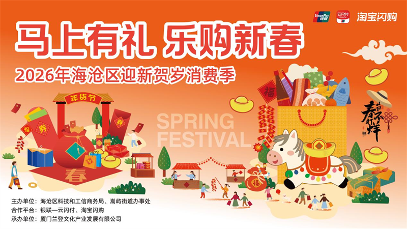 发布时间:2026-02-03 15:23:46 | 来源:中国网 | 作者: | 责任编辑:孙玥岁序更迭,春潮涌动。为深入贯彻落实扩内需、促消费工作要求,抢抓2026年新春消费黄金期,激活辖区消费市场内生动力,近日,“马上有礼、乐购新春”海沧区迎新贺岁消费季正式启幕。本次活动由海沧区科技和工信商务局主办,联动银联-云闪付、淘宝闪购两大平台,精准投放200万元专项消费补贴,以“线上发券惠民+线下造景聚气”的融合模式,为市民群众奉上一场年味浓郁、福利丰厚的新春消费盛宴。
