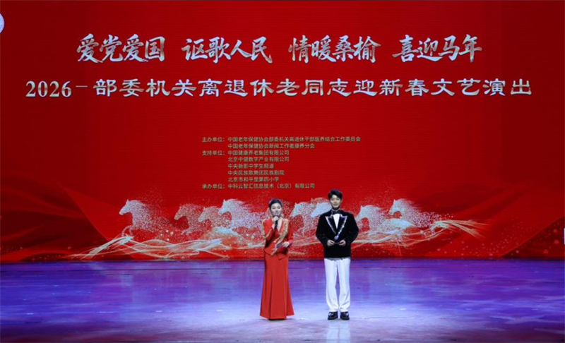 发布时间:2026-02-03 15:23:46 | 来源:中国网 | 作者: | 责任编辑:孙玥岁律更新,春潮涌动,马年新春的脚步悄然临近。2月2日下午,中央民族歌舞团民族剧院内暖意氤氲、欢声盈堂,“爱党爱国展风采、情暖桑榆贺新春”2026年部委机关离退休老同志迎新春文艺演出在此温情启幕。来自各部委的离退休老同志们欢聚一堂,以歌传情、以舞抒怀,用一场浸润初心、饱含深情的艺术盛宴,共贺新春佳节,同抒家国情怀。