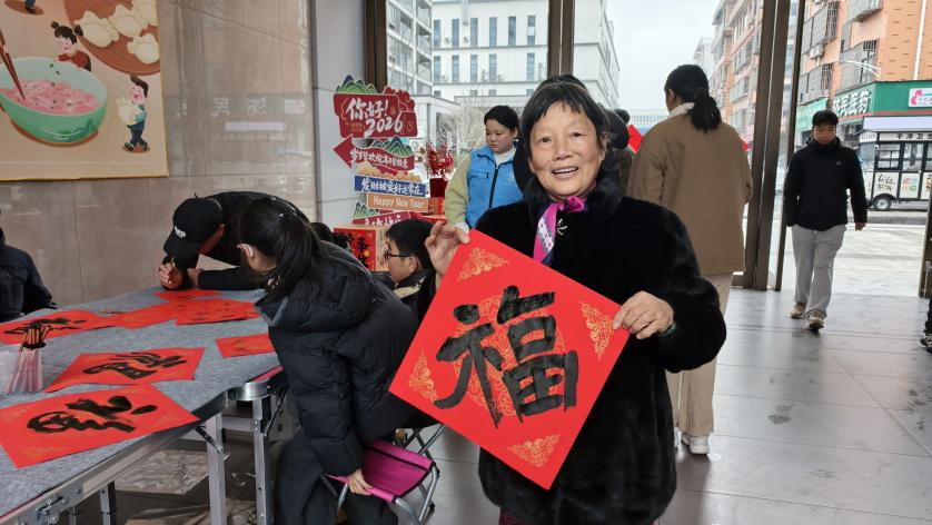 2026年1月31日,一个寻常的周六,空气中却弥漫着不寻常的墨香与温情。在义乌市退役军人事务局指导下,在义乌市薪火社会工作服务中心组织的社区活动中,一位精神矍铄的老人正凝神静气,挥毫泼墨。他叫黄樟弟,一位有着特殊身份的老人——他的父亲在抗美援朝时英勇牺牲,他是一名烈属。退休二十余年来,黄樟弟将对父辈的深切怀念与对书法艺术的热爱,转化为一项温暖而持久的行动:每年春节前夕,他都义务为社区邻里、特别是同为烈属的家庭书写春联与“福”字。昨日,他再次铺开红纸,将饱含敬意的祝福,一笔一画地送到“光荣之家”的心坎上。